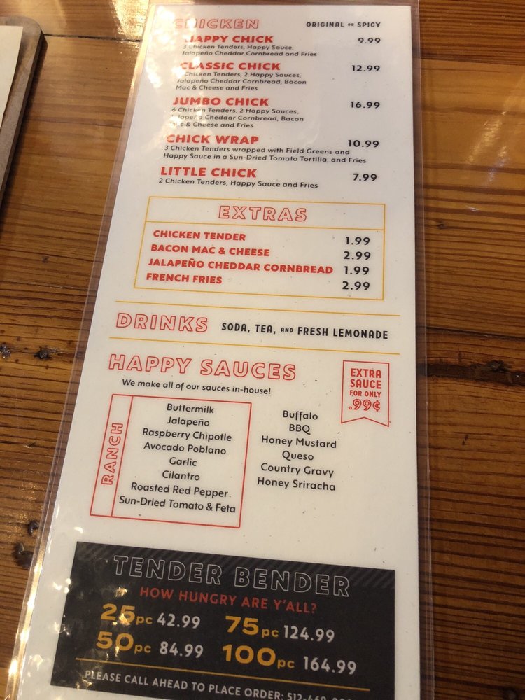 Welcome to Happy Chicks, a delightful new American bar experience located at 214 E 6th St, Austin, TX. This chicken-centric eatery specializes in tender, flavorful chicken, offering a variety of options from the Little Chick with two tenders to the impressive Jumbo Chick featuring five. Guests rave about the Happy Sauce, a signature addition that perfectly complements each dish.